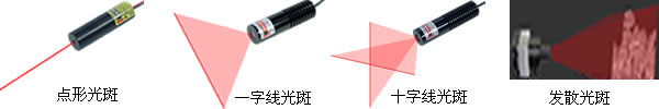 激光器按照光斑形状可分为点形激光器、一字线形激光器、十字线线激光器、发散光斑激光器等: